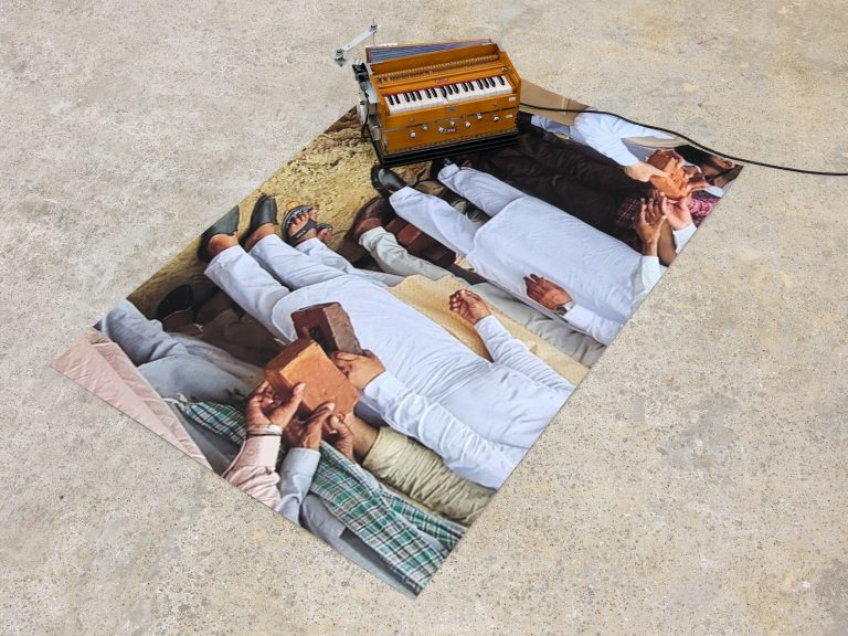Candace Hill-Montgomery, Manhood Played Bi Guitar Maid, 2024, navajo sheep wool, linen, 38.73 x 26.67 cm